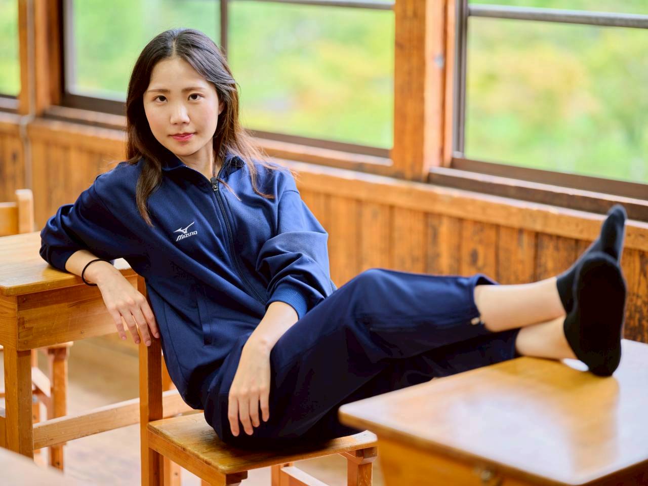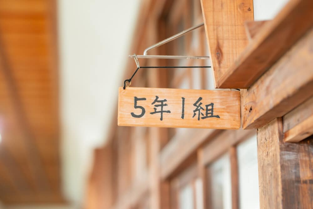 木造の校舎、椅子と机で雰囲気抜群!